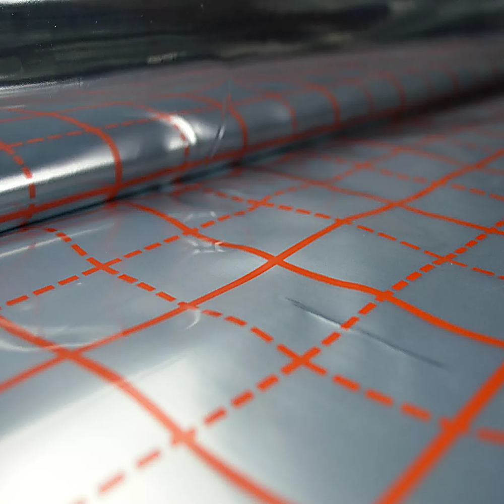 - Spezielle Markierung mit einem aufgedruckten Raster (10 cm x 10 cm), erleichtert die Montage der Heizungsanlage